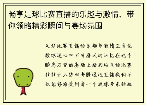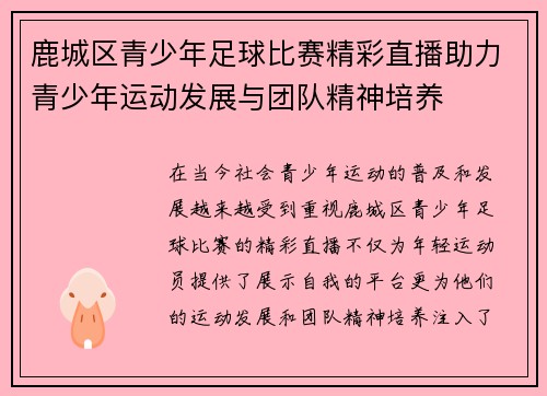 在现代社会,足球作为全球最受欢迎的运动之一,吸引了无数球迷的关注。耿马足球比赛直播已成为众多球迷追逐比赛、享受精彩瞬间的重要方式。本文将详细探讨耿马足球比赛直播观看渠道及平台推荐,从网络直播平台、社交媒体、电视直播以及移动应用四个方面进行分析。通过对各大渠道的特点与优势进行深入剖析,帮助读者更好地选...