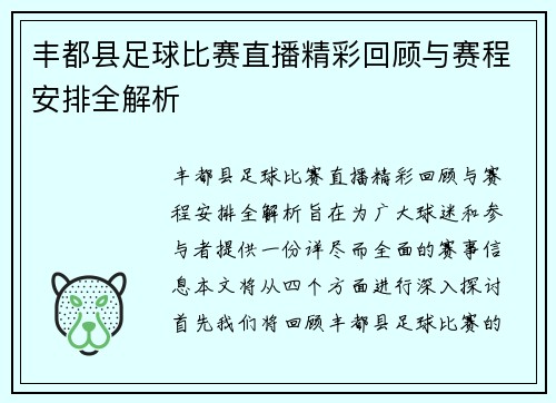 在定日足球比赛中,精彩的直播与瞬间回顾为球迷们提供了无与伦比的视觉享受和情感共鸣。本文将从赛事全程回顾、精彩瞬间分析、赛后数据解读以及观众互动体验四个方面,对这场比赛进行详细阐述。通过对每一个环节的深入分析,我们不仅能更好地理解比赛进程,还能体会到足球带来的激情和魅力。此外,赛后的数据统计与观众反馈...